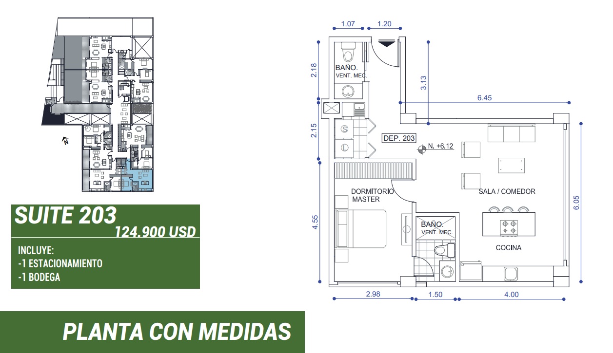 • VENDO SUITE, UN (1) DORMITORIO, A ESTRENAR, CON ACABADOS DE PRIMERA