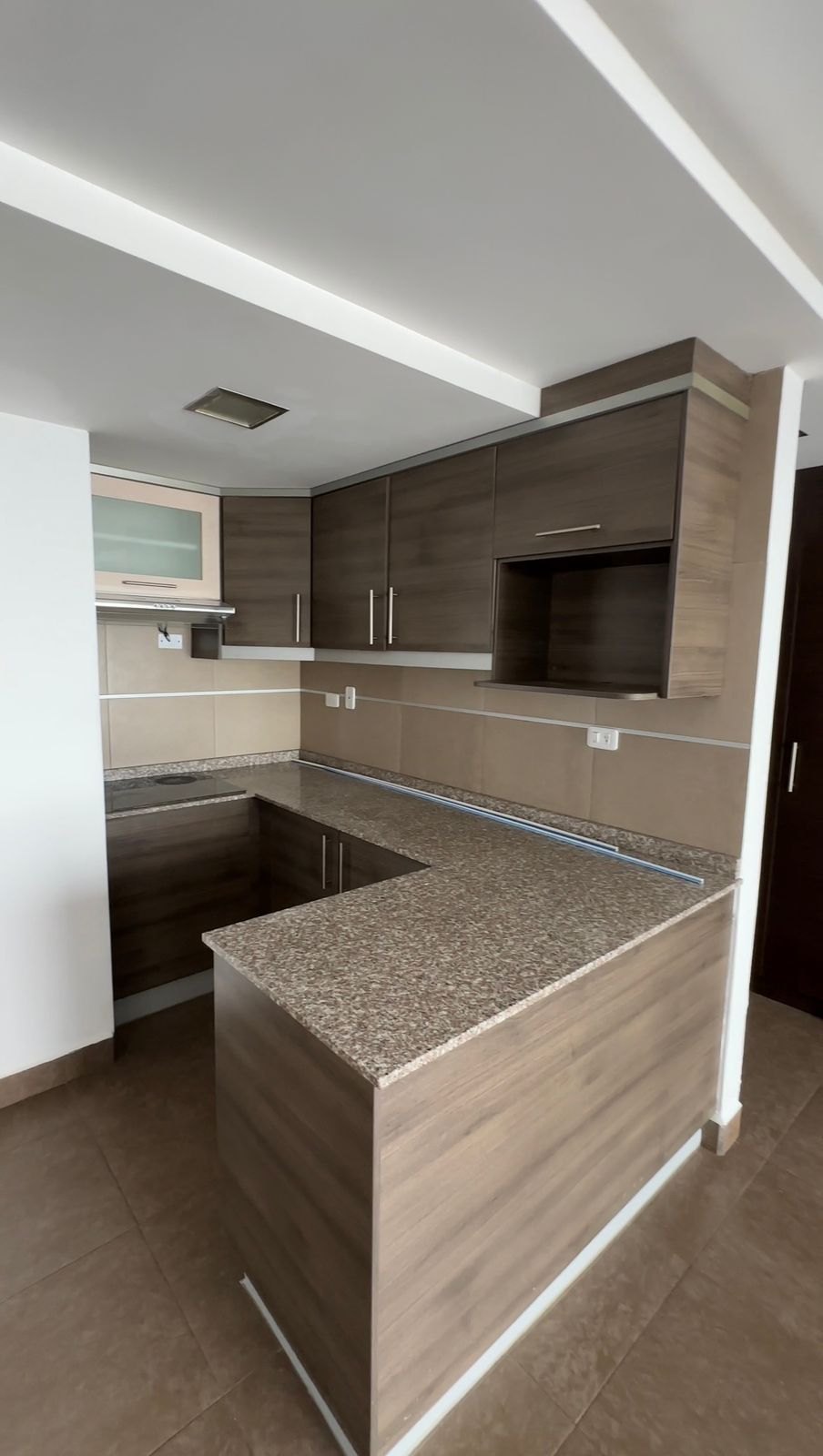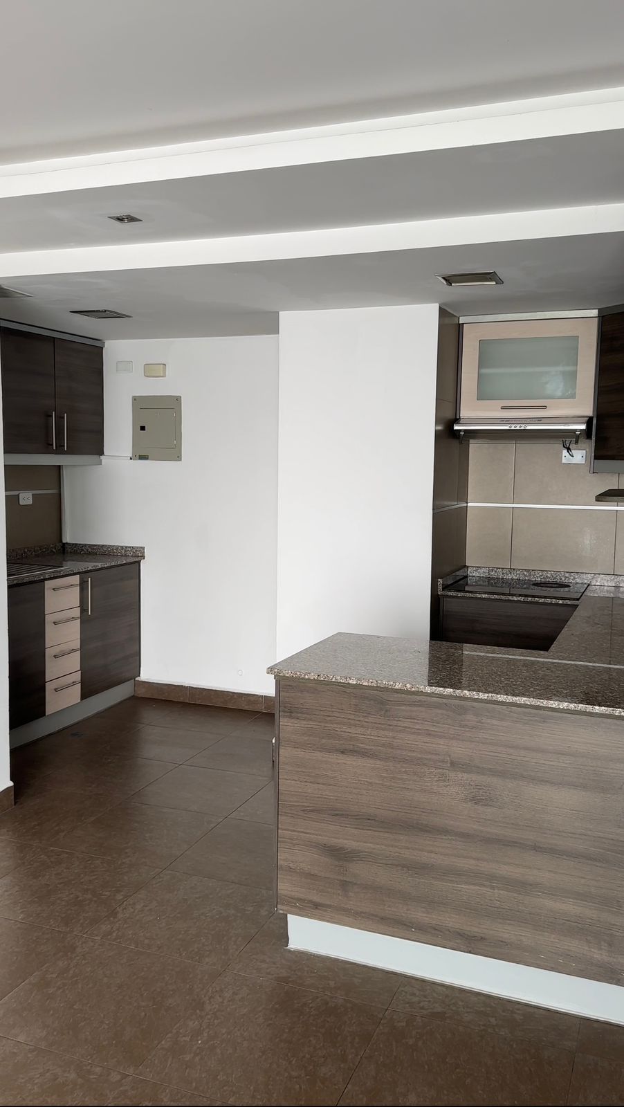 • COCINA ESTILO AMERICANO CON PLANCHA DE COCINA DE INDUCCIÓN, EXTRACTOR DE OLORES, DESAYUNADOR Y MUEBLES DE COCINA